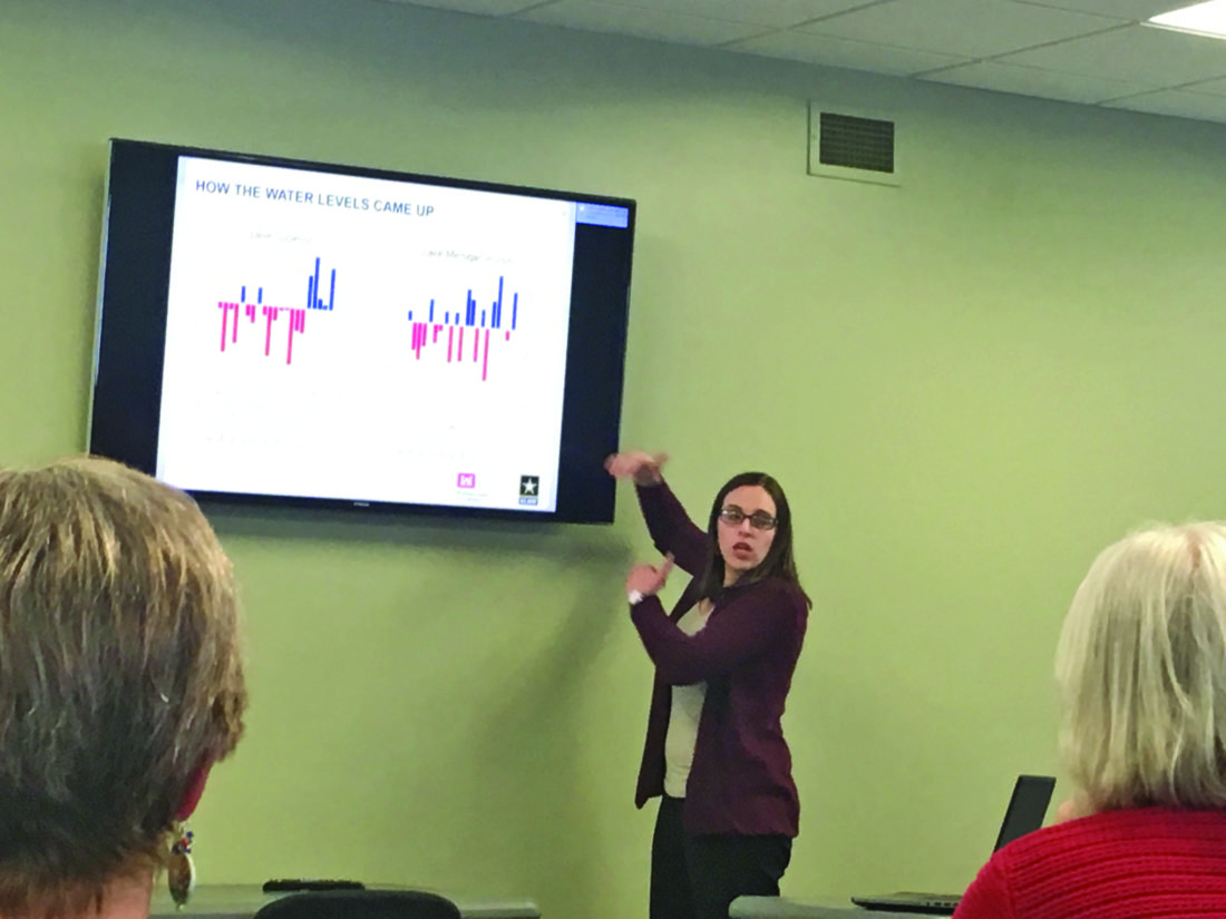 Deanna Apps of the U.S. Army Corps of Engineers speaks about the current high water levels on Lake Superior at a presentation given by the U.S. Army Corps of Engineers April 16 at the Marquette Township Community Room. (Journal photo by Cecilia Brown)