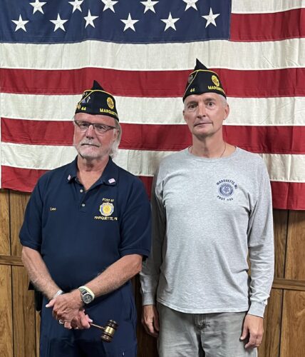 A new Commander at the Richard M. Jopling American Legion Post 44 took over effective July 1. Leo Smith (left) is the new commander and assumed his duties at the recent meeting. Jim Wallis held that position for the last five years and was congratulated for his excellent leadership.