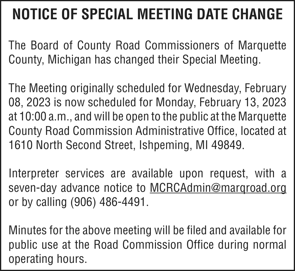 Court address – 234 W. Baraga Ave., Marquette, MI 49855