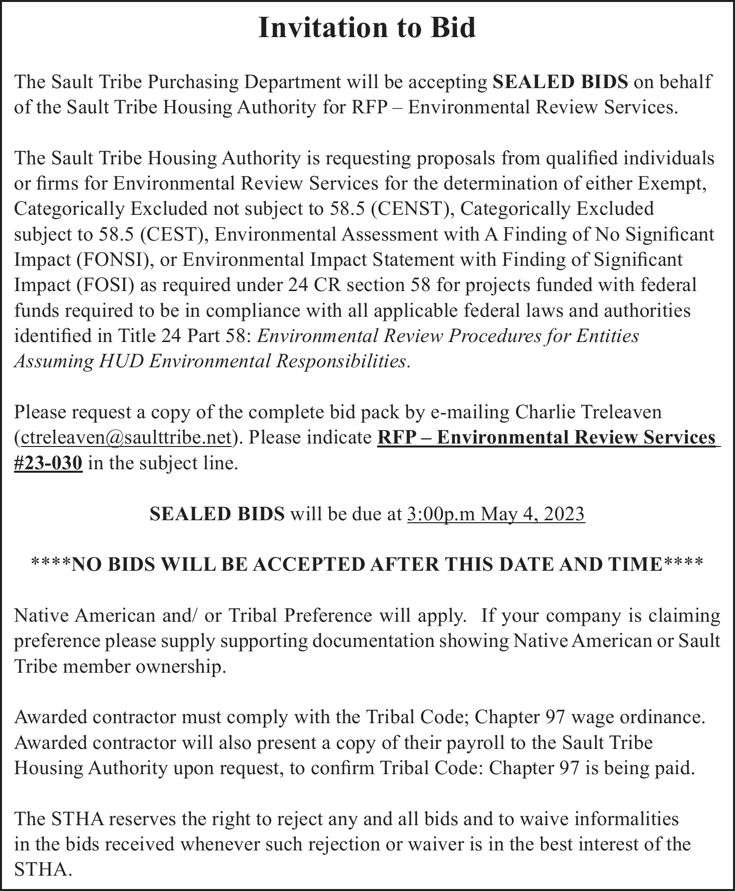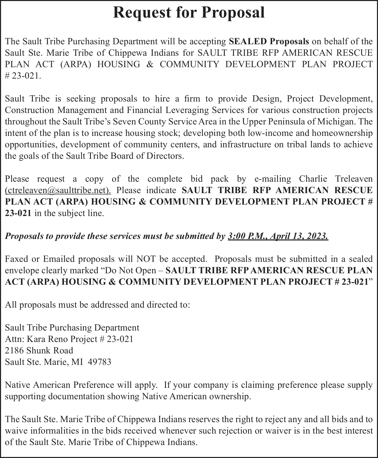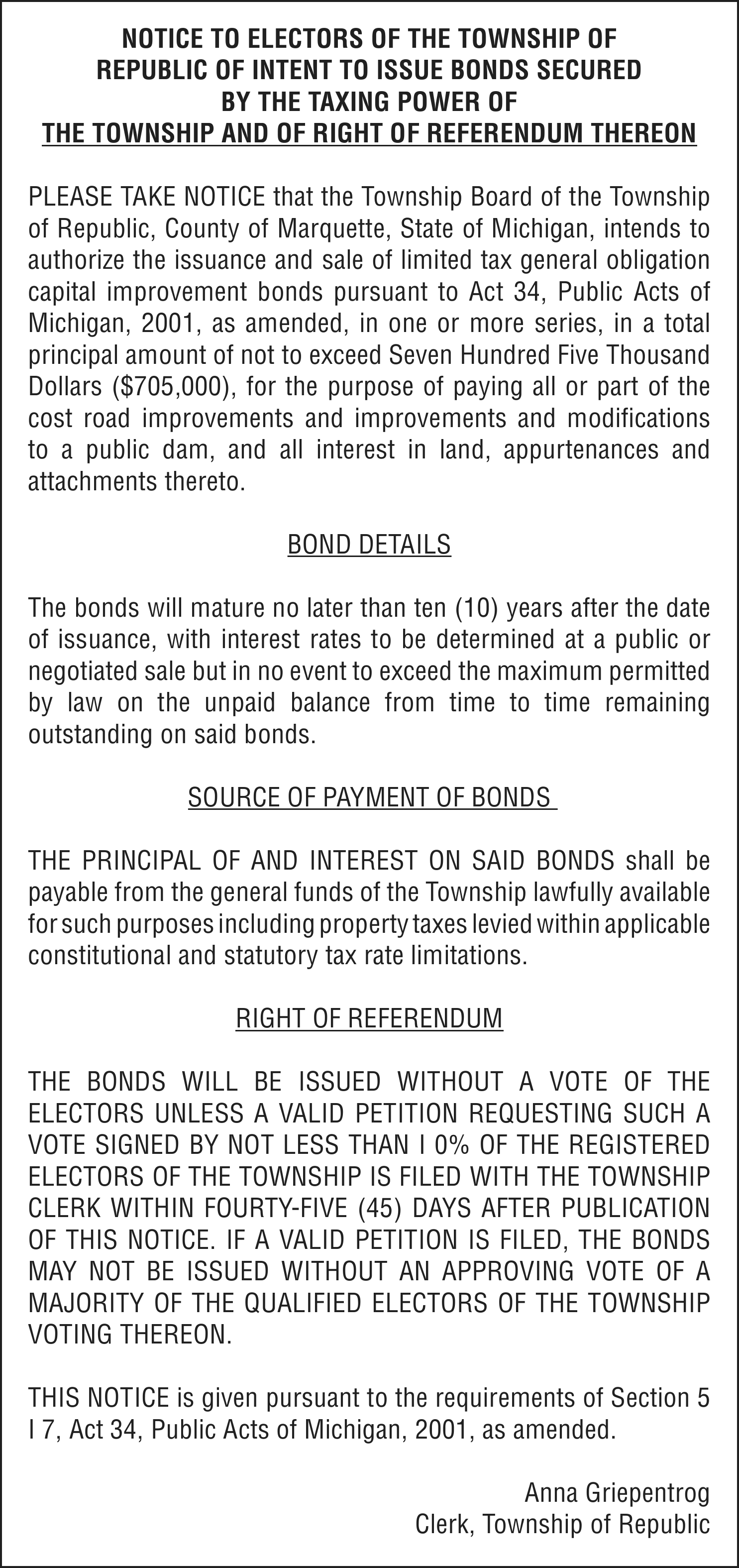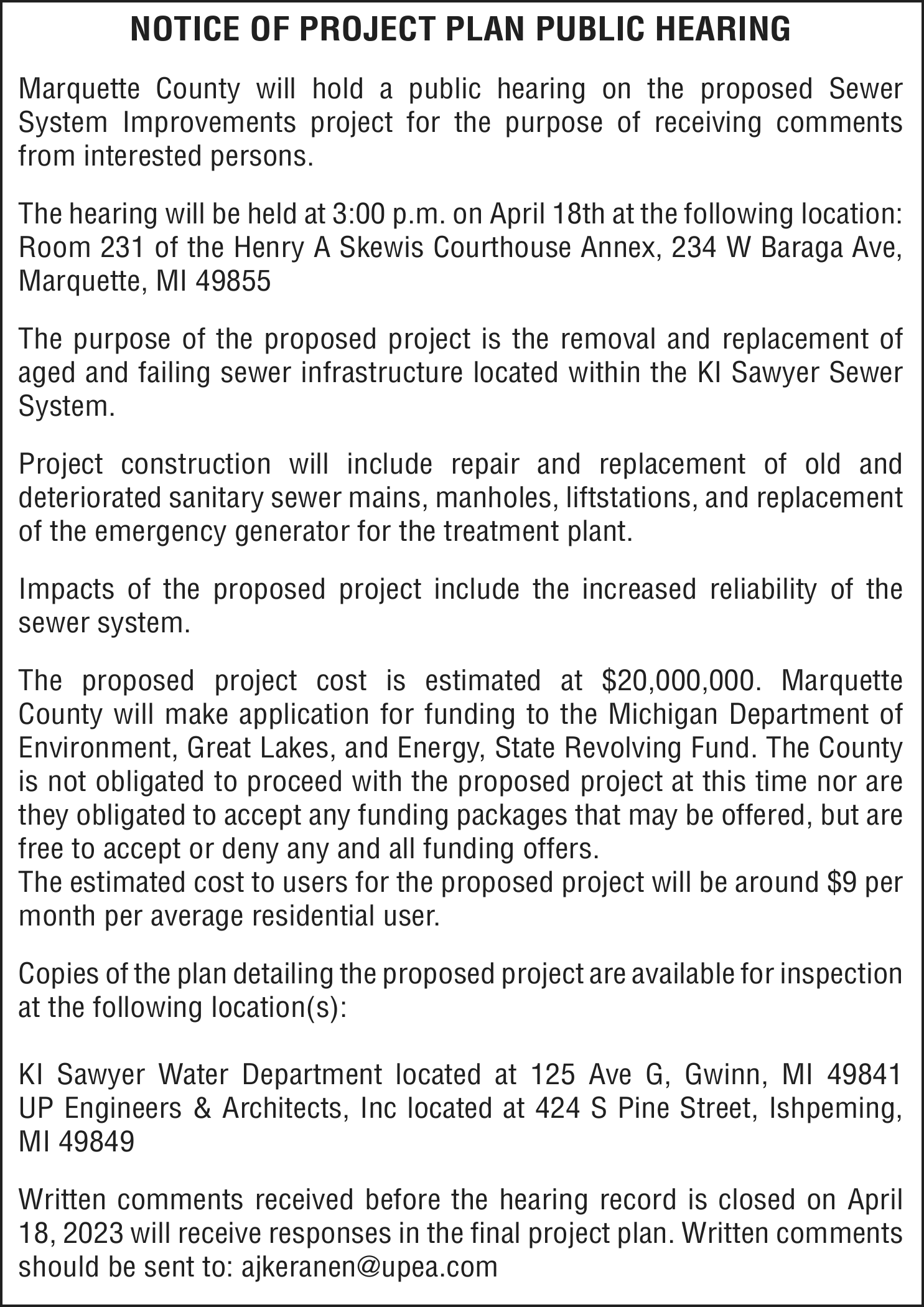TAKE NOTICE: A hearing will be held on Monday, April 17, 2023 at 11:00am at 101 Court Street, Munising, MI 49862, before Judge Charles Nebel for the following purpose: