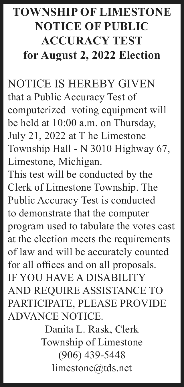 Creditors of the decedent are notified that all claims against the estate will be forever barred unless presented to Patricia Jones, personal representative, or to both the probate court at 401 E. Houghton Ave., Houghton, MI 49931 and the personal representative within 4 months after the date of publication of this notice.