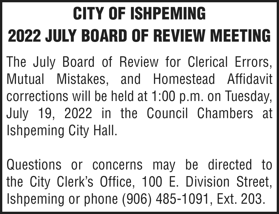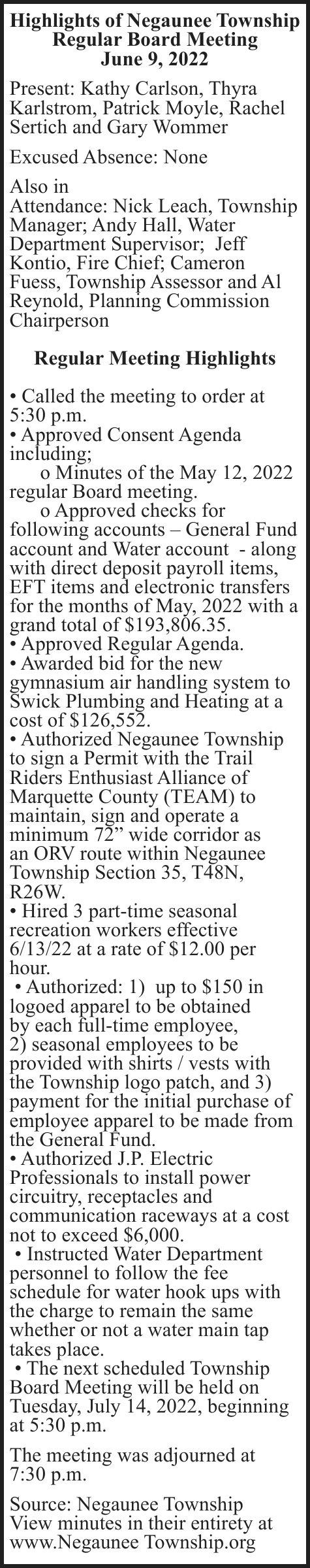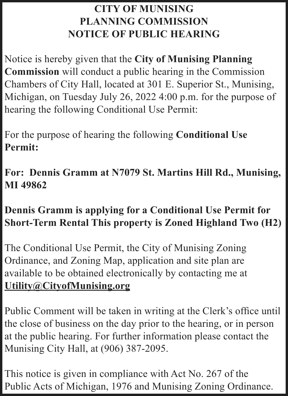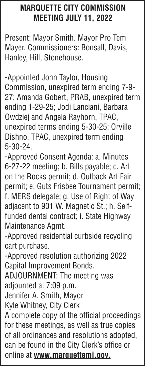 Notice is given under section 3212 of the revised judicature act of 1961, 1961 PA 236, MCL 600.3212, that the following mortgage will be foreclosed by a sale of the mortgaged premises, or some part of them, at a public auction sale to the highest bidder for cash or cashier’s check at the place of holding the circuit court in Marquette County, starting promptly at 10:00 AM, on July 28, 2022. The amount due on the mortgage may be greater on the day of sale. Placing the highest bid at the sale does not automatically entitle the purchaser to free and clear ownership of the property. A potential purchaser is encouraged to contact the county register of deeds office or a title insurance company, either of which may charge a fee for this information: