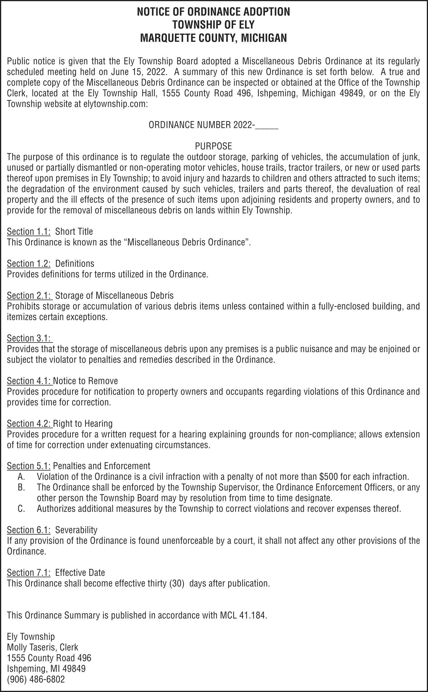 Court address – 234 W. Baraga Ave., Marquette, MI 49855