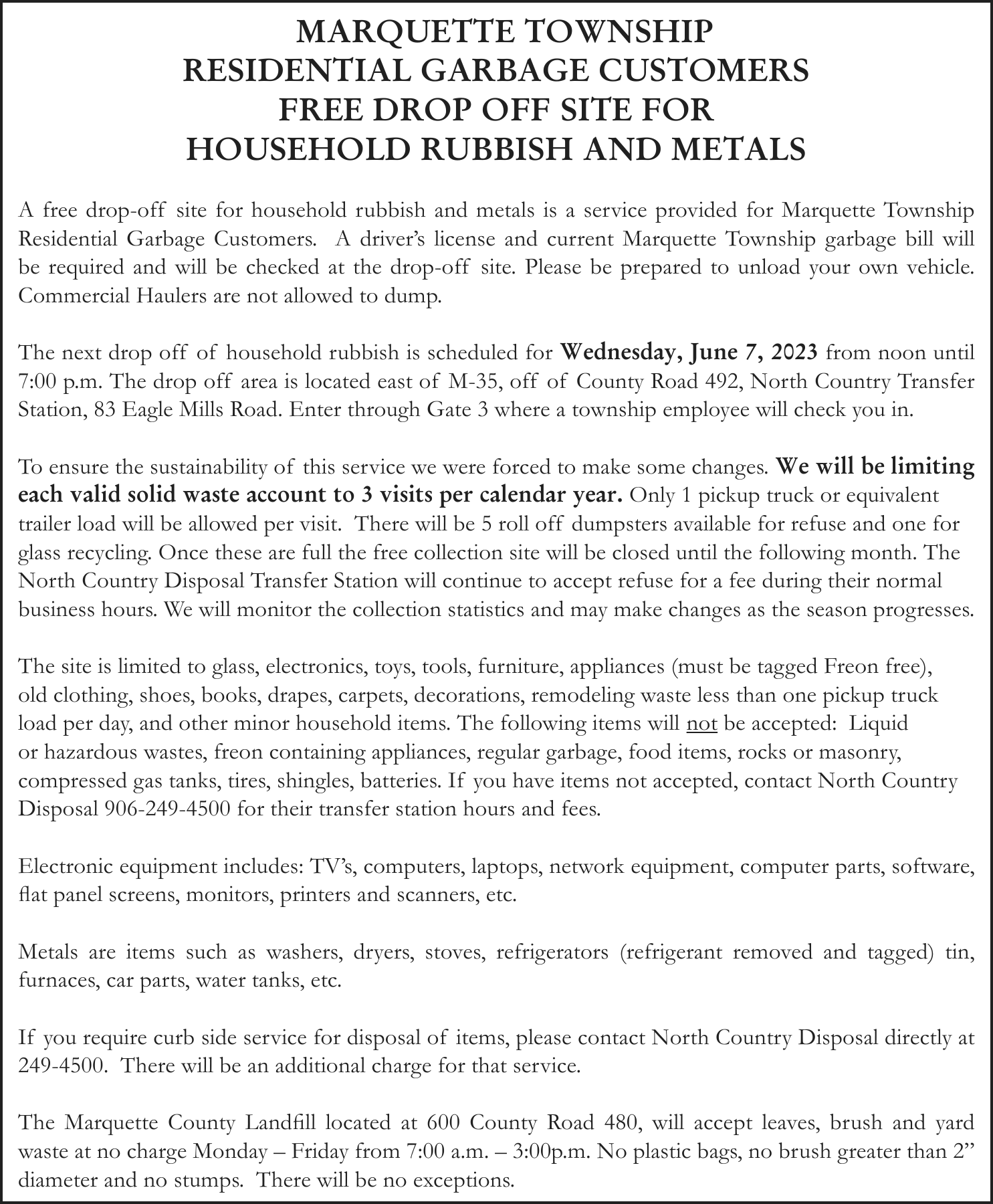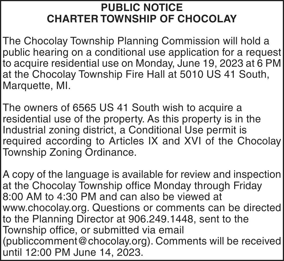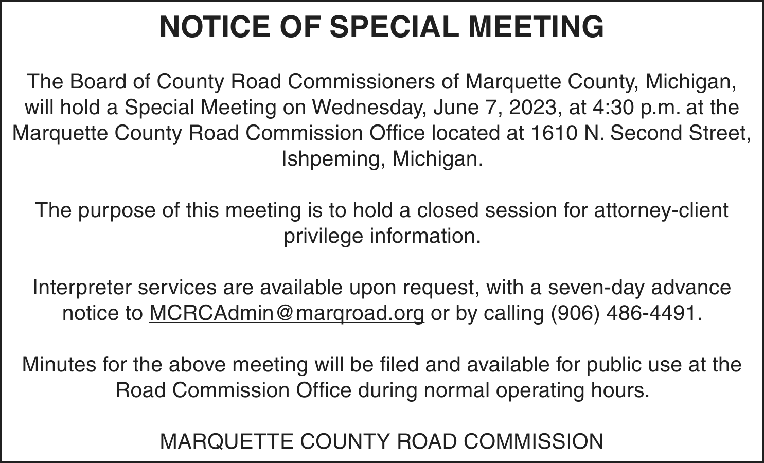 Court address – 234 W. Baraga Ave., Marquette, MI 49855