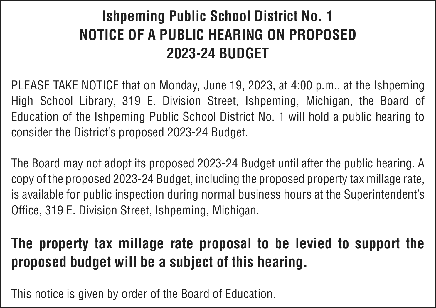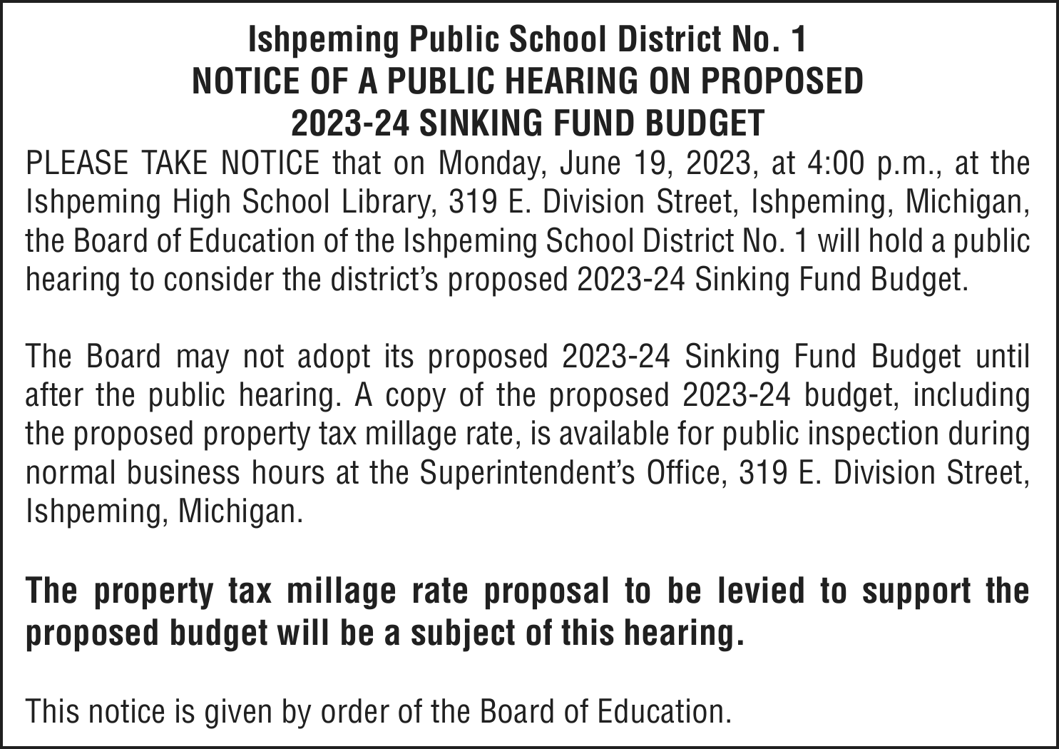 2. A copy of this order shall be published once each week in The Mining Journal for three consecutive weeks.
