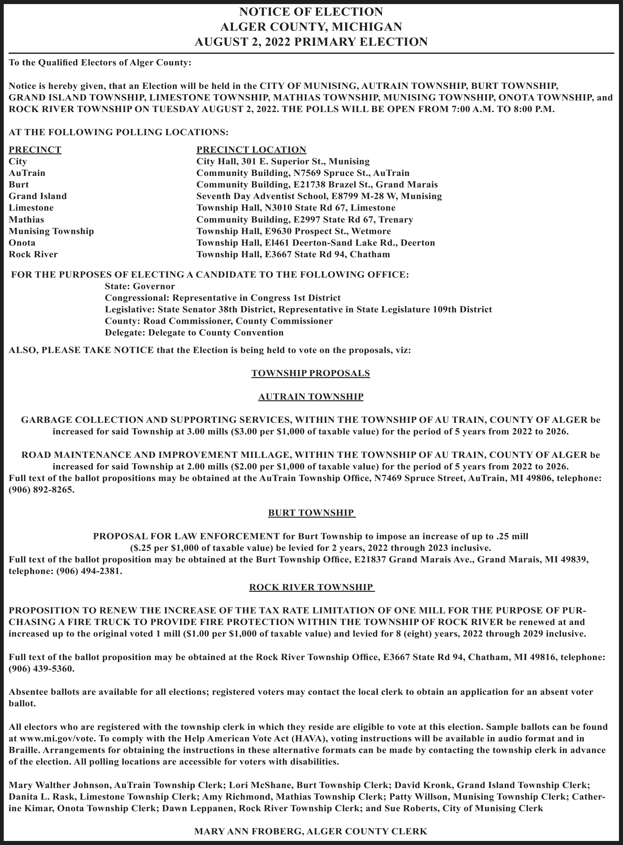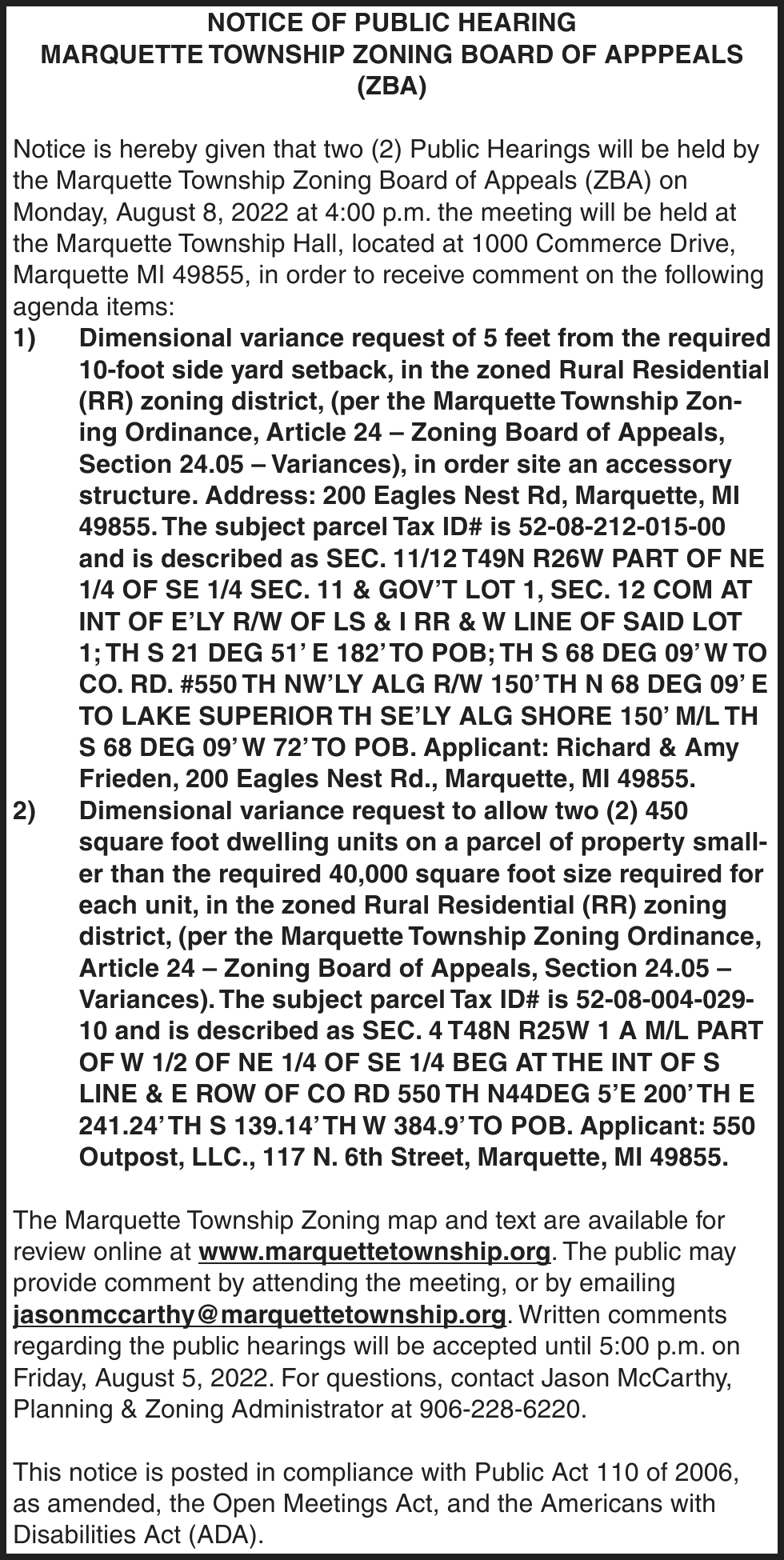 Court address – 234 W. Baraga Ave., Marquette, MI 49855