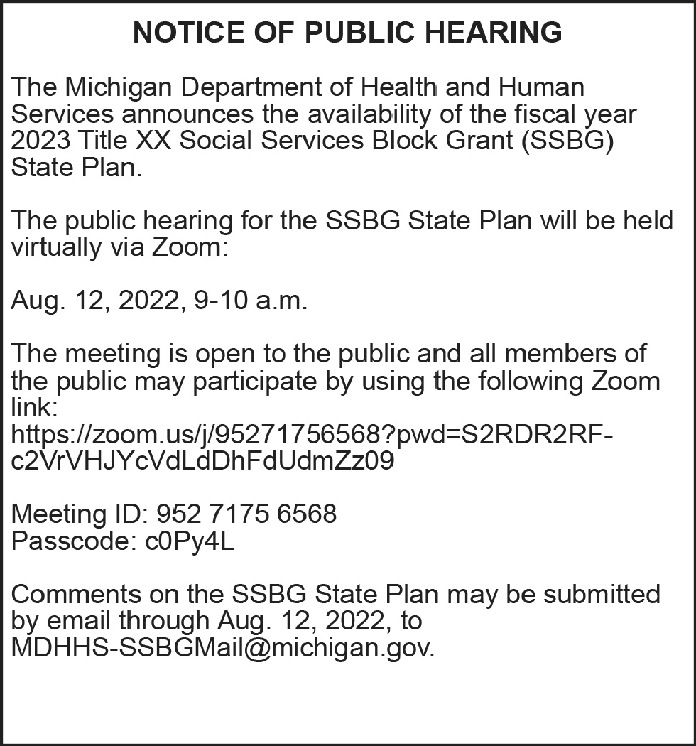Creditors of the decedent are notified that all claims against the estate will be forever barred unless presented to Casey Nicholson, personal representative, or to both the probate court at 234 W. Baraga Ave., Marquette, MI 49855 and the personal representative within 4 months after the date of publication of this notice.