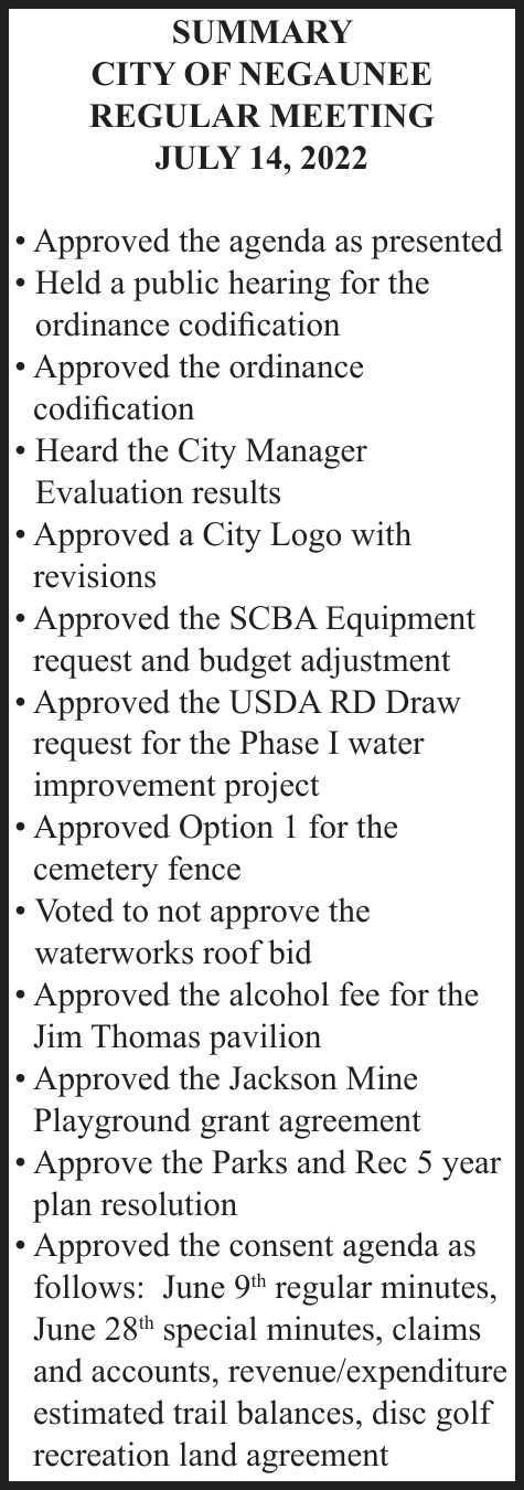 Creditors of the decedent are notified that all claims against the estate will be forever barred unless presented to Dorothy K. Payment, personal representative, or to both the probate court at 234 W. Baraga Ave., Marquette, MI 49855 and the personal representative within 4 months after the date of publication of this notice.