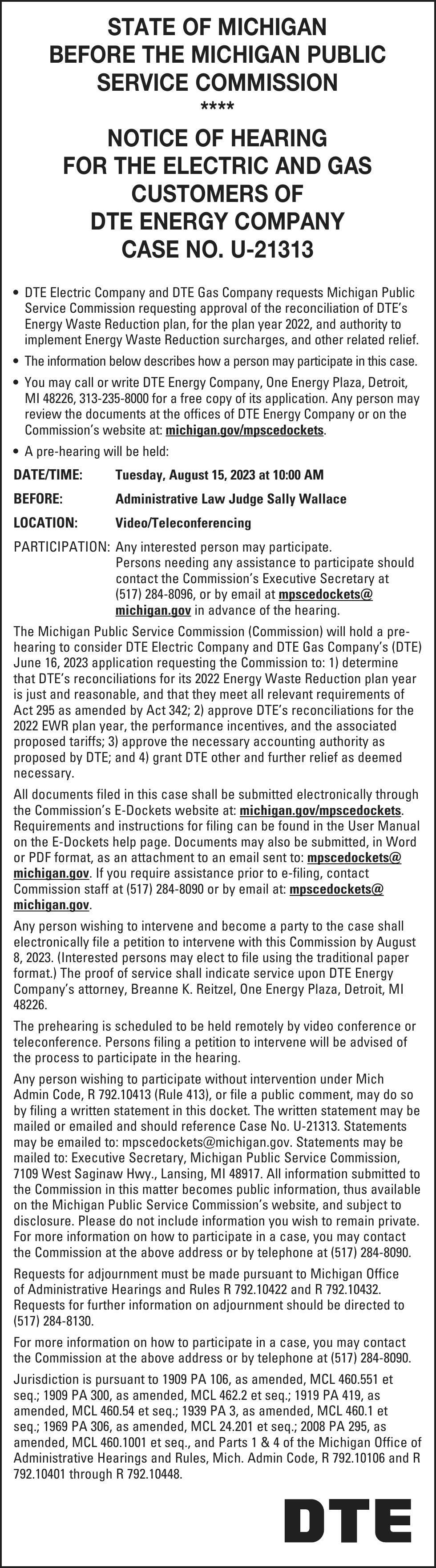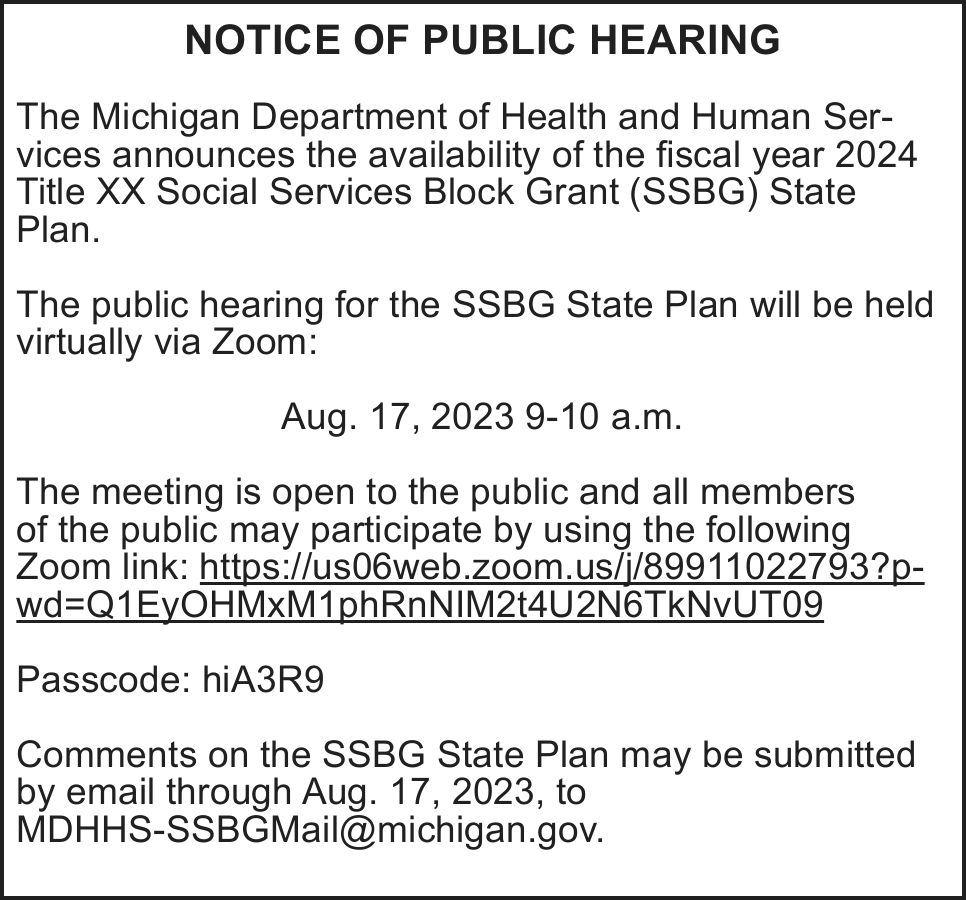 A name change hearing will be held on Monday, August 7, 2023 at 10:00am (EST) at Marquette County Probate Court before HON. CHERYL L. HILL to change the name of: