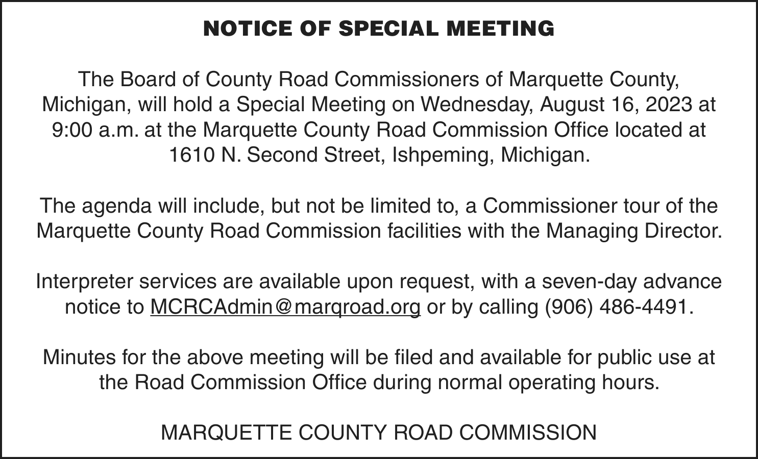 Court address – 234 W. Baraga Ave., Marquette, MI 49855
