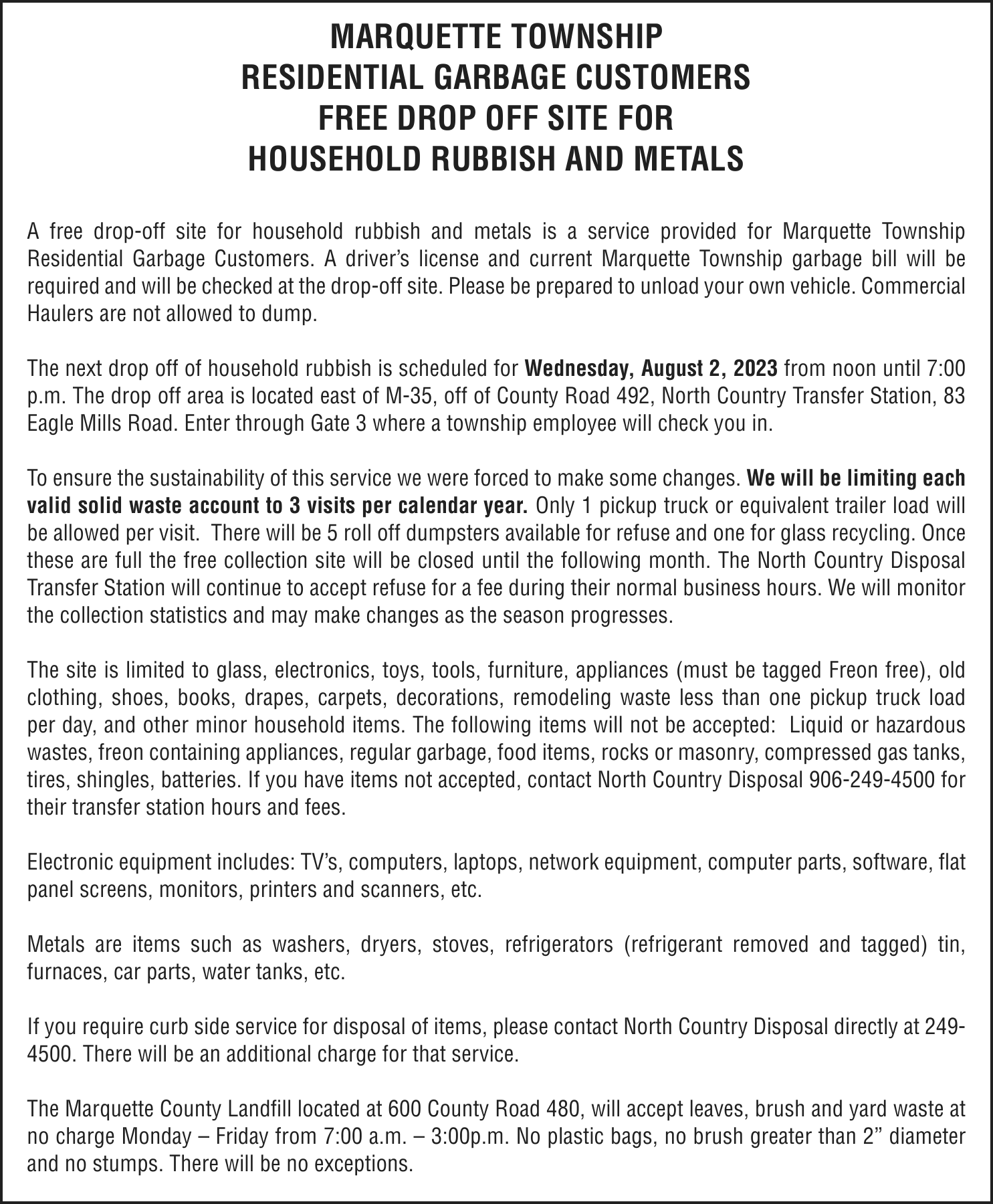 Court address – 234 W. Baraga Ave., Marquette, MI 49855
