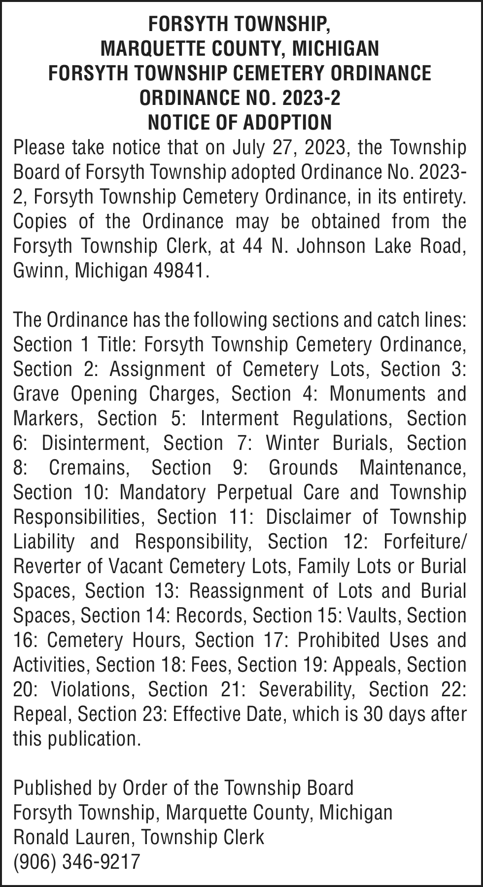Court telephone no. – 906-387-2080