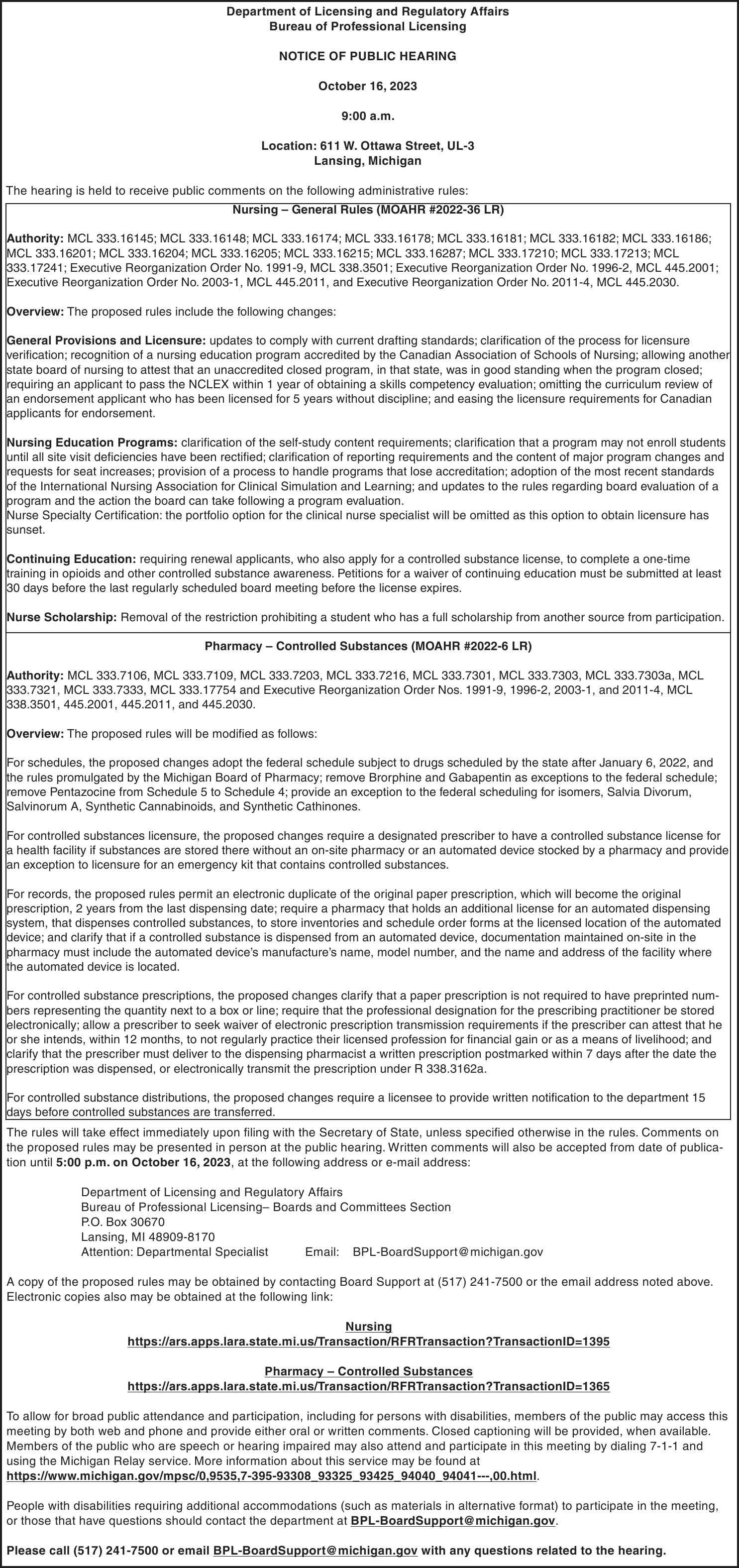 TAKE NOTICE: A hearing will be held on Monday, November 13, 2023 at 9:00am (EST) at Alger County Probate & Family Court before Hon. Charles C. Nebel to change the name of: Daniel William Green to Bree Ann Green.