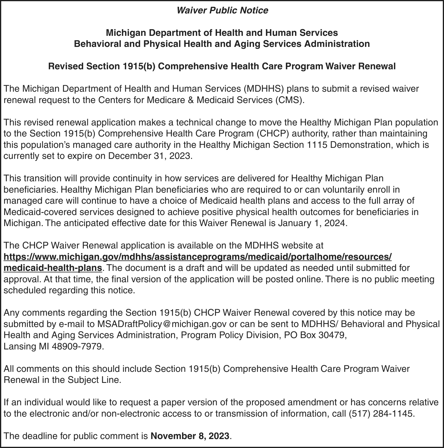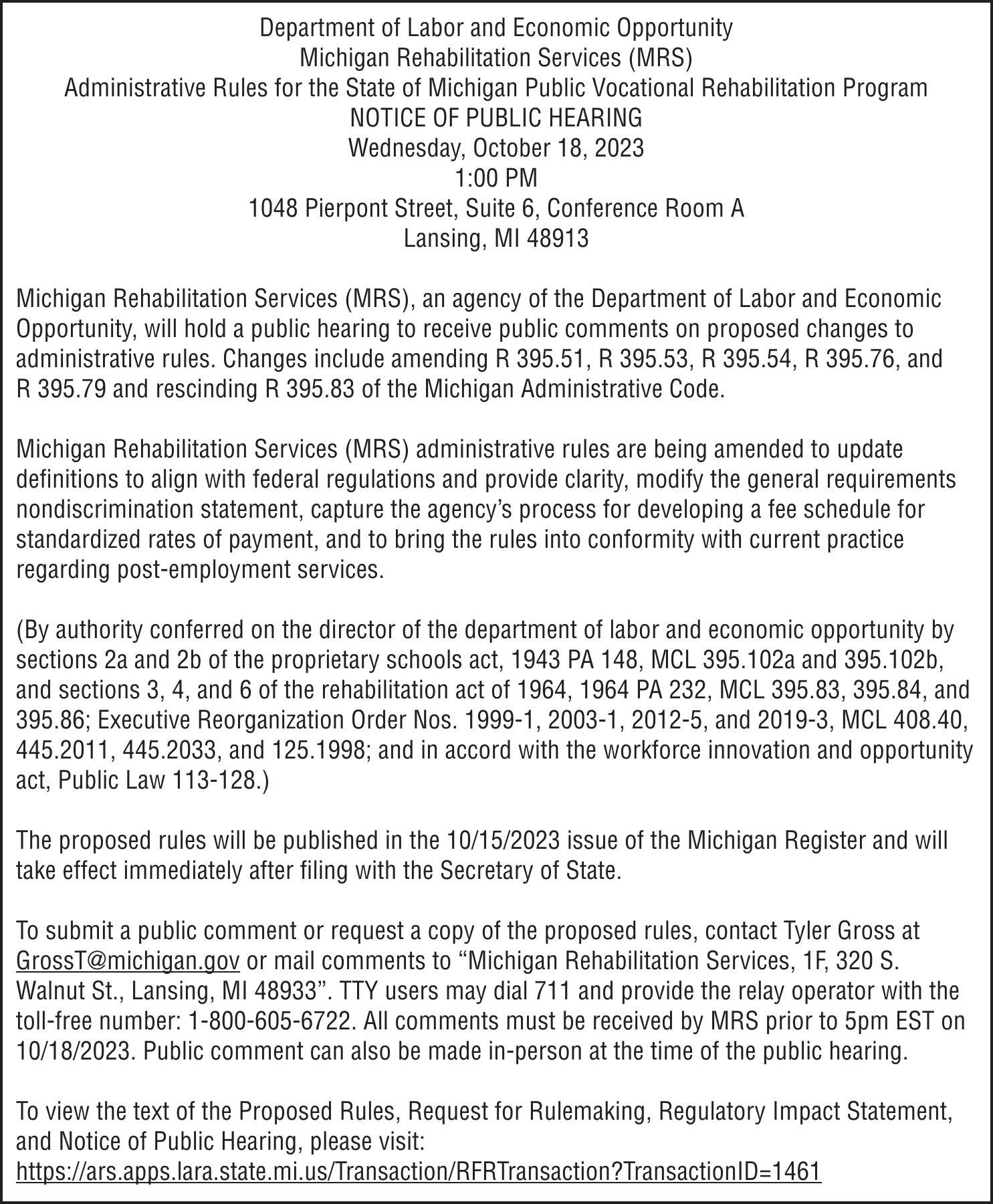 Date of notice: September 12, 2023
