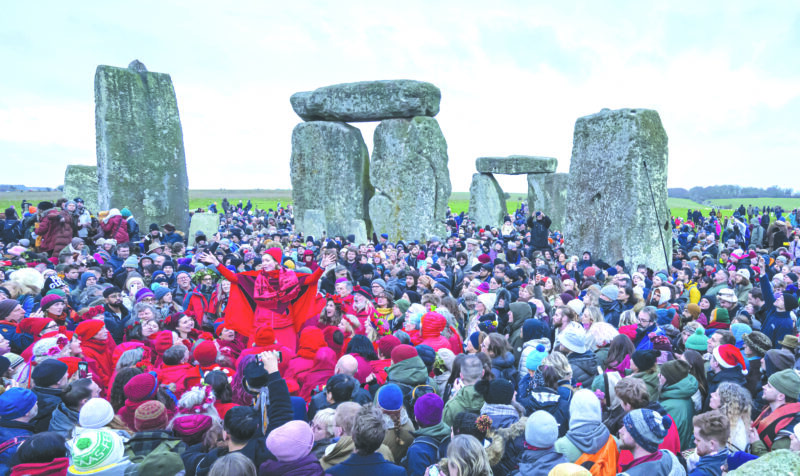 People celebrate the winter solstice sunrise celebration at Stonehenge, England, on Dec. 21, 2024. (AP file photo)