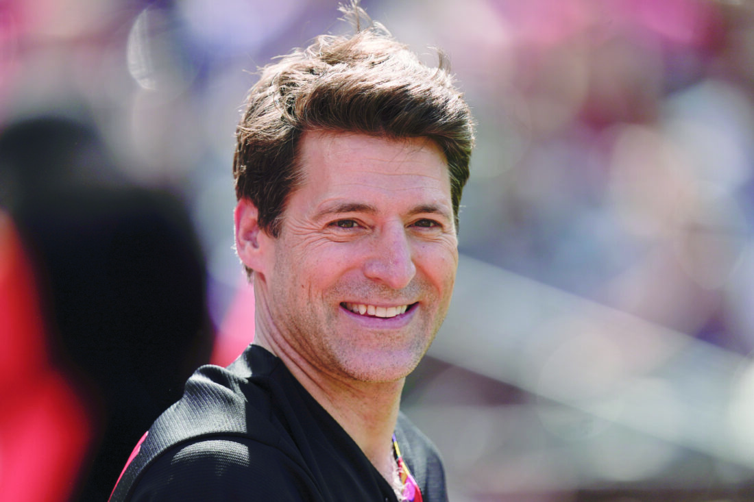 Tony Dokoupil, co-host of "CBS This Morning," looks on before throwing a ceremonial first pitch prior to a baseball game between the Baltimore Orioles and the Texas Rangers on May 27, 2023, in Baltimore. (AP photo)