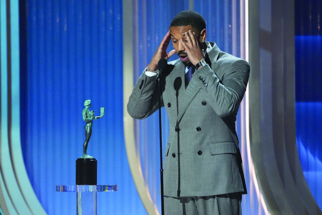 Michael B. Jordan accepts the award for outstanding performance by a male actor in a leading role for "Sinners" during the 32nd Annual Actor Awards on Sunday at the Shrine Auditorium and Expo Hall in Los Angeles. (AP photo)
