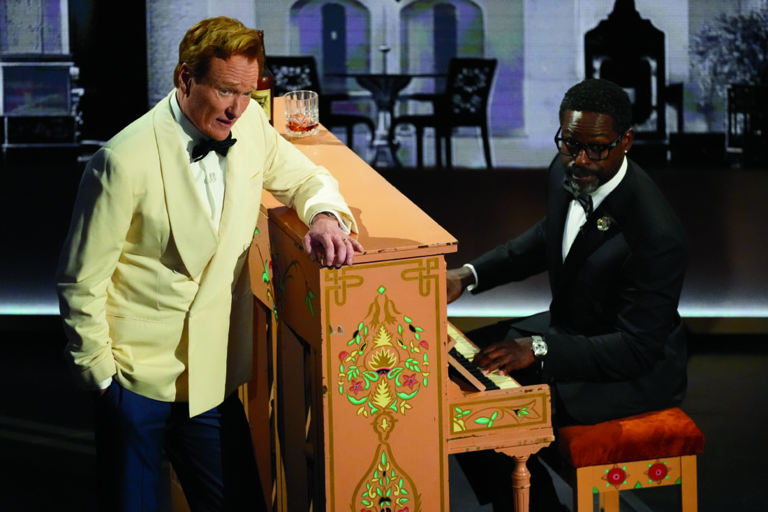- Host Conan O’Brien, left, and Sterling K. Brown perform during the Oscars on Sunday at the Dolby Theatre in Los Angeles. (AP photo)