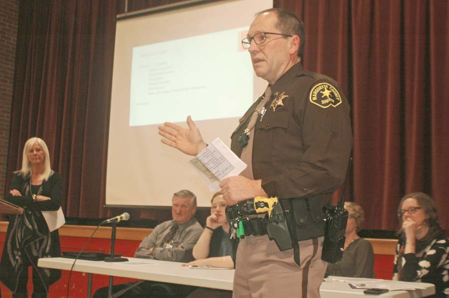 - Marquette County Sheriff Greg Zyburt talks about substance abuse at a recent community panel entitled “The Cost of Addiction.” The event took place at Marquette Alternative High School at Vandenboom. (Journal photo by Christie Bleck)