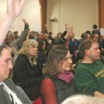 - Members of the panel audience raise their hands to show they’ve been impacted by substance abuse in one way or another. (Journal photo by Christie Bleck)