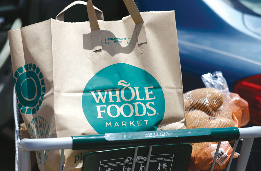Groceries from Whole Foods Market sit in a cart June 16 before being loaded into a car, outside a store in Jackson, Miss. Some small and mid-sized food companies are wondering how Amazon’s planned purchase of Whole Foods might affect them. The unknowns include whether Amazon might change the grocery chain’s food offerings, which now include thousands of products from small and mid-sized businesses. A key question for many companies is whether Whole Foods would place less of an emphasis on buying locally produced and innovative foods in the future. (AP photo)