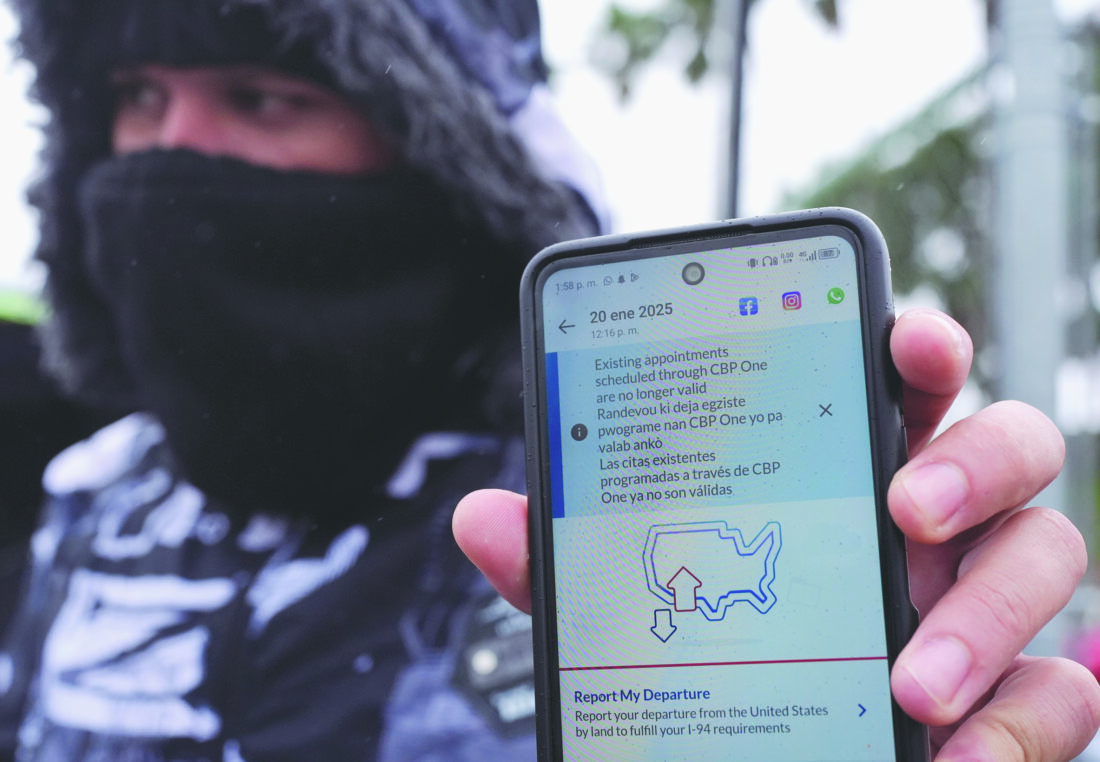 A migrant seeking asylum holds up the CBP One app showing his appointment was canceled after President Donald Trump was sworn into office on Jan. 20 in Matamoros, Mexico. (AP file photo)