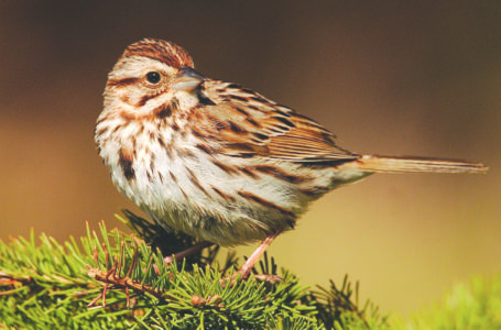 - This song sparrow finds a perch in a local fir tree. (Photo courtesy Scot Stewart)