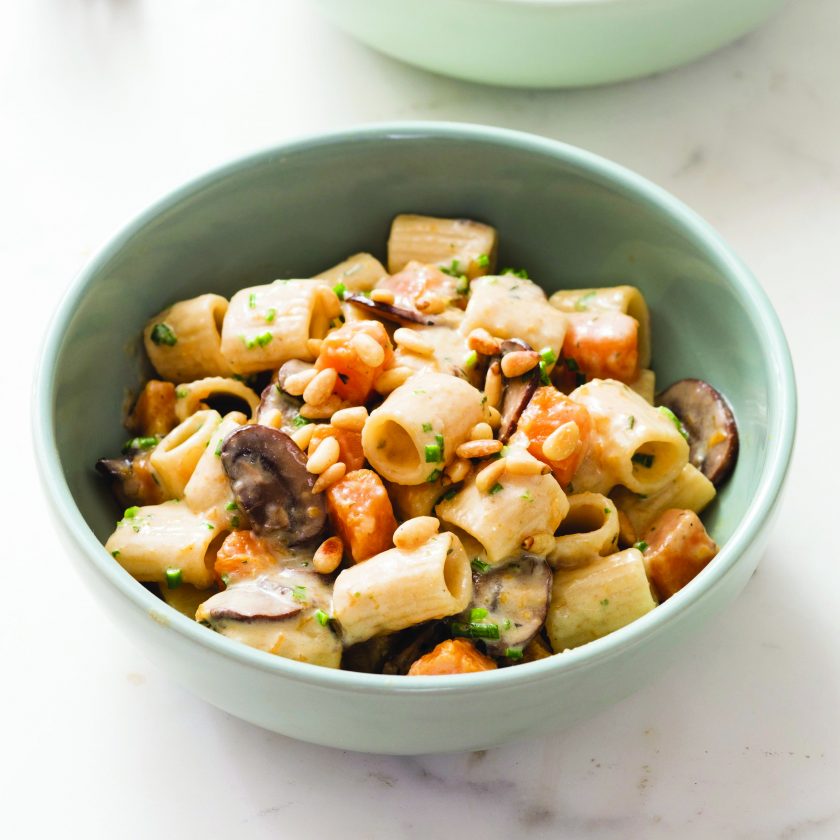 CREAMY RIGATONI WITH MUSHROOMS, BUTTERNUT SQUASH AND PINE NUTS