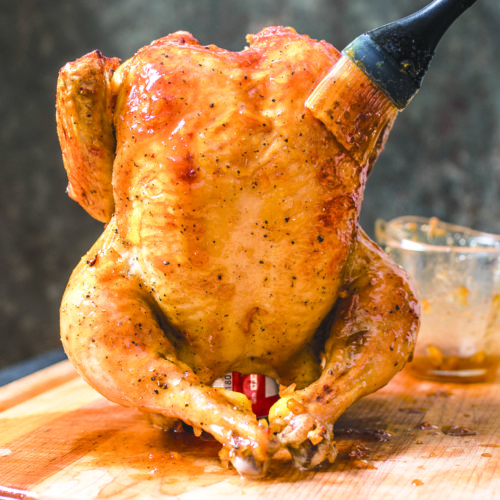Most glazed roast chicken recipes offer some variation on these instructions: Roast a chicken as you would normally, painting on a sweet glaze 15 to 30 minutes before the bird is done.