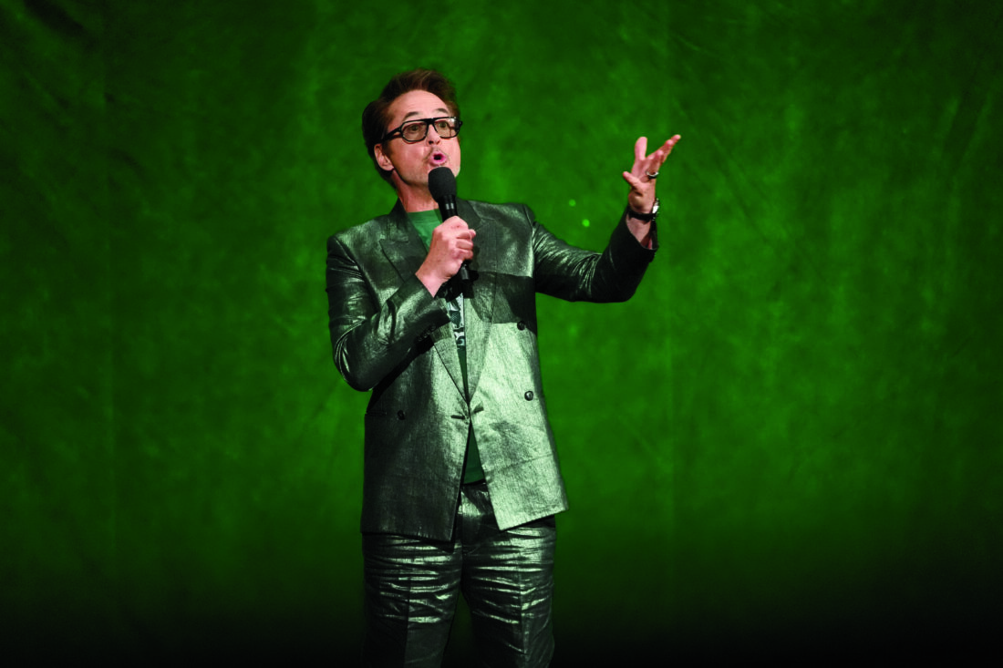 Robert Downey Jr., cast member of the upcoming film "Avengers: Doomsday, speaks during the Walt Disney Studios presentation at CinemaCon on Thursday at Caesars Palace in Las Vegas. (AP photo)