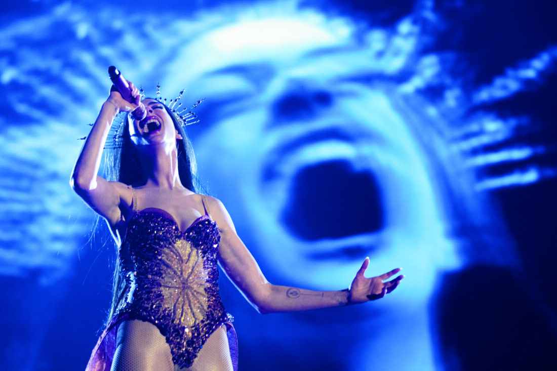 This image released by A24 shows Anne Hathaway in a scene from "Mother Mary." (Frederic Batier/A24 via AP)