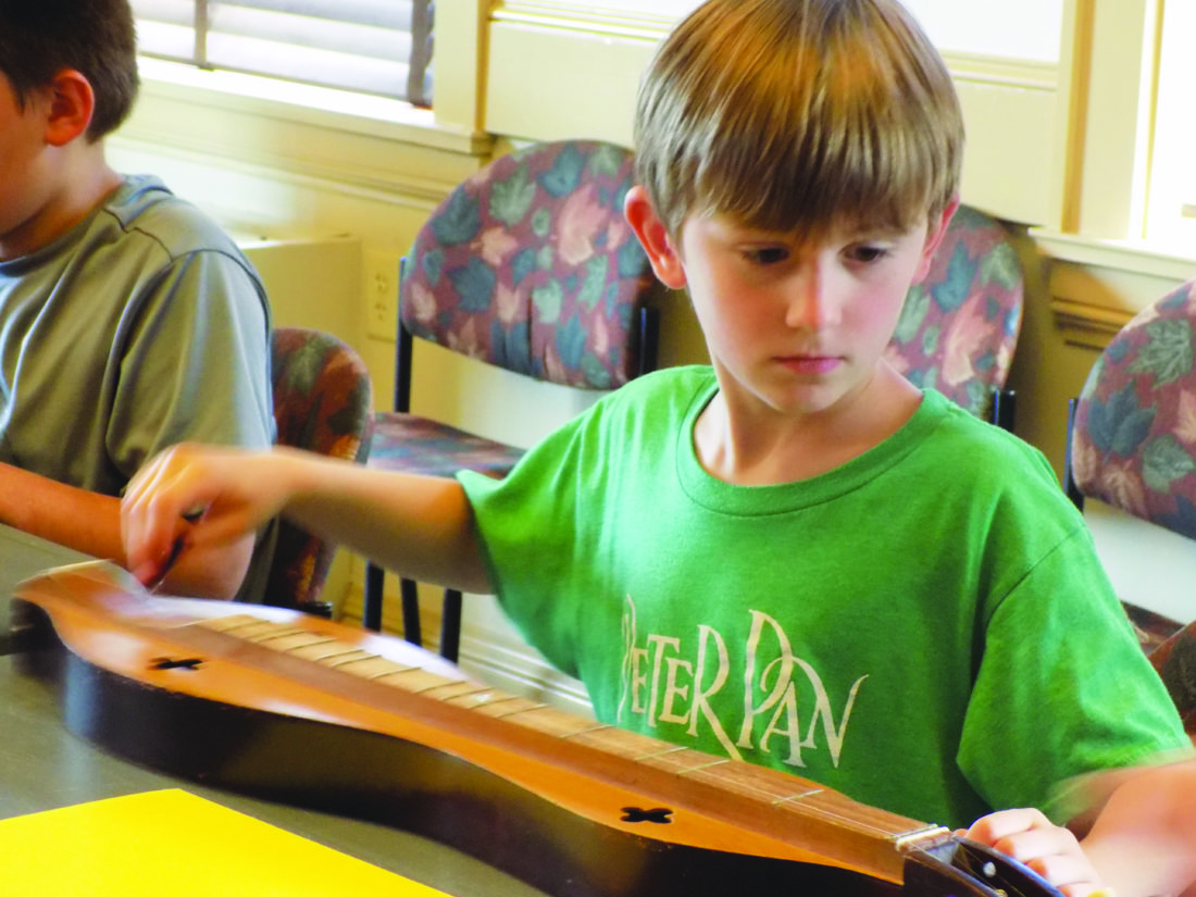 Jack Johnson, 7, of Harvey learns basic dulcimer skills during WednesdayÕs ÒRock the DulcimerÓ workshop at Peter White Public Library in Marquette. The workshop was taught by musicians Wanda Degen and Kay Rinker-OÕNeil. (Journal photo by Christie Bleck)