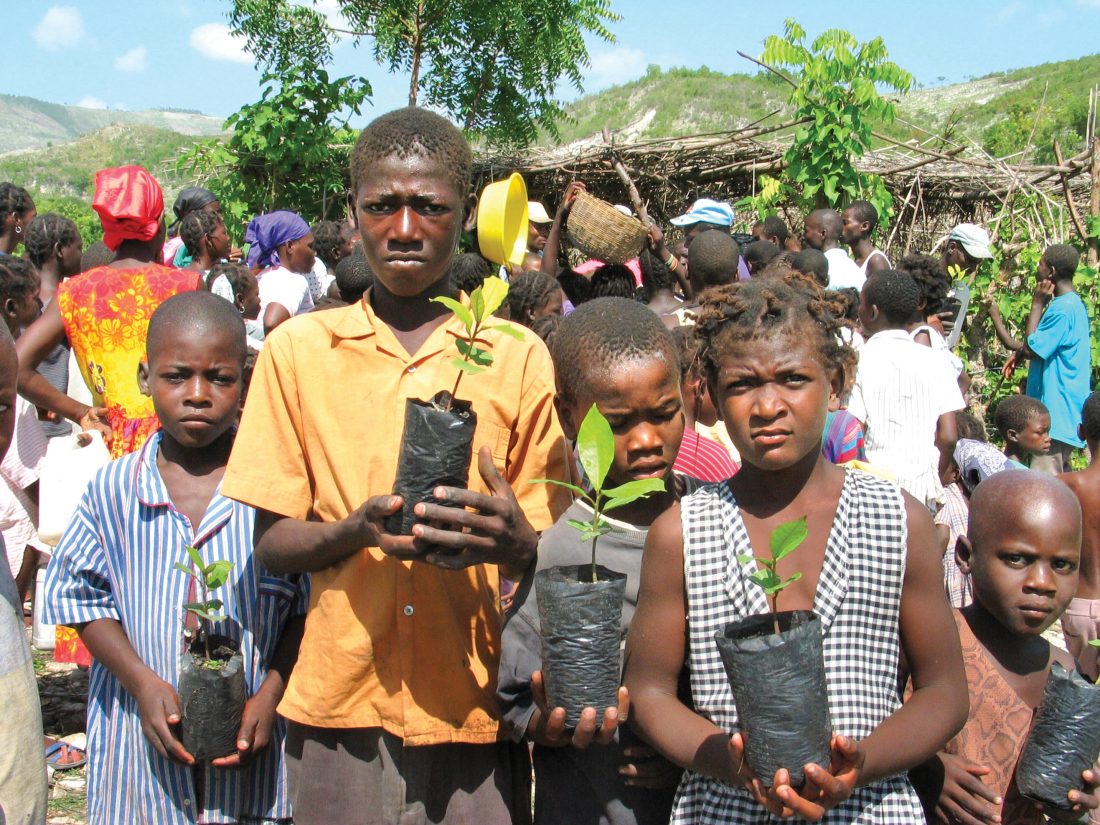- Haitian children receive fruit trees in Verrettes, Haiti, so they can grow their trees to provide funds for their education. (Photo courtesy of Tom Braak)