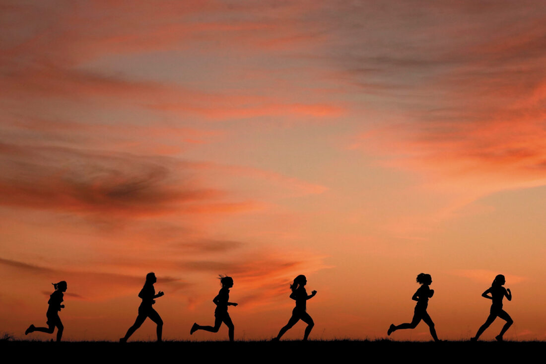 High school students run at sunset as they practice for the track and field season on Feb. 28 in Shawnee, Kan. New research hints that even simple exercise just might help fend off memory problems. While physical activity helps keep healthy brains fit, it’s not clear how much it helps once memory starts to slide. (AP photo)