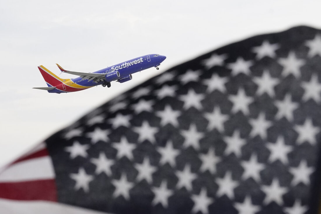 A Southwest Airlines passenger jet takes off at Chicago’s Midway International Airport on July 1 in Chicago. Travelers will probably pay more for airline tickets or a hotel room around the holidays than they did over last Thanksgiving or Christmas. (AP photo)