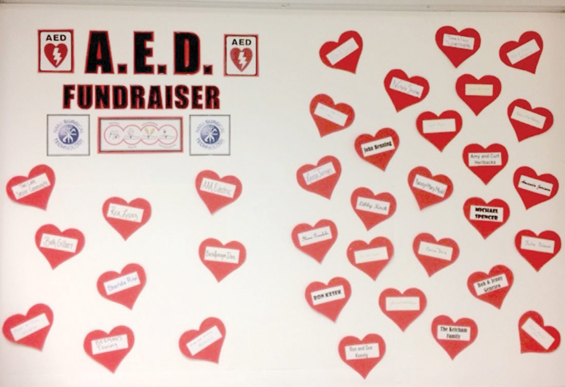 - These hearts bear the names of donors for the AED fundraiser started by the Surgical Technology Club at Northern Michigan University. (Photo courtesy of NMU)
