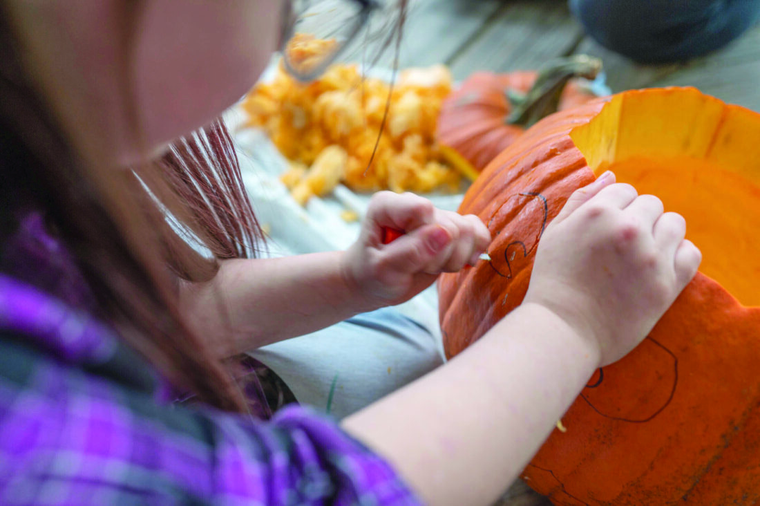 - A kid carves a pumpkin on the front porch of her home on Oct 20, 2023, in Auburn, Maine. (Andree Kehn/Sun Journal via AP)