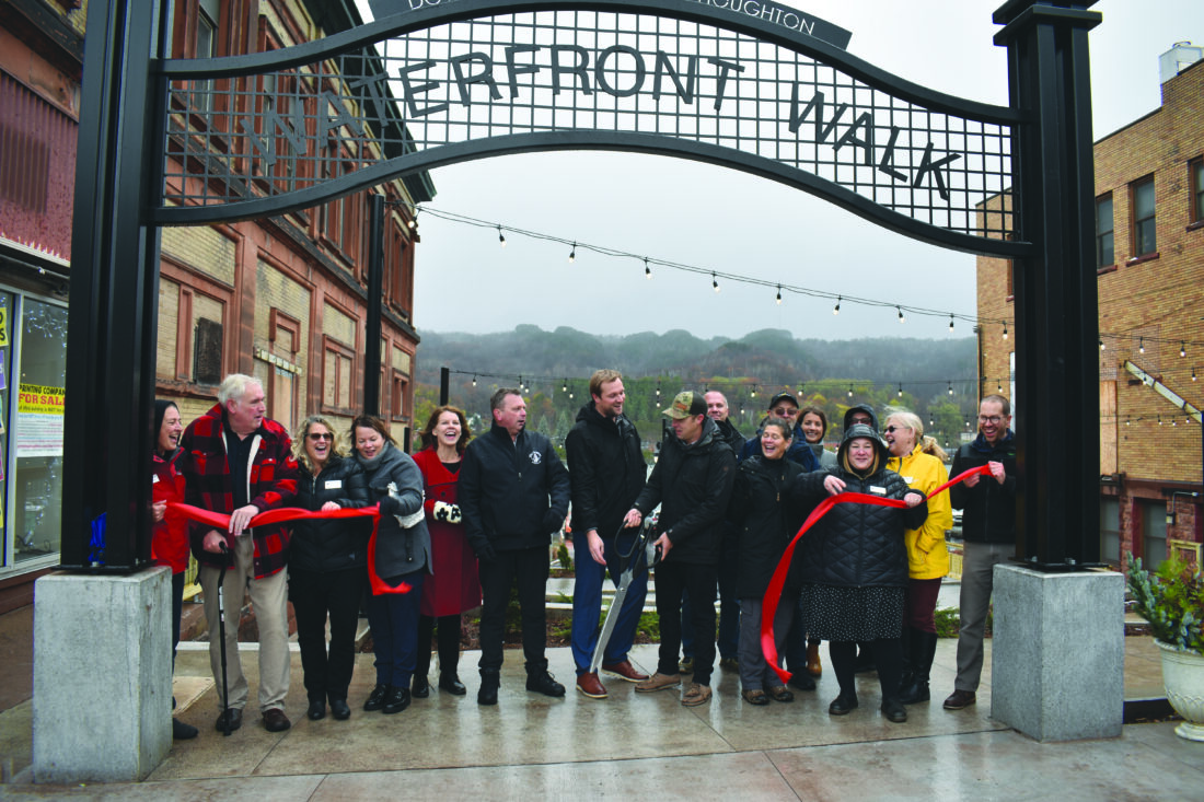 HOUGHTON — Near a former entrance to the Lakeshore Drive parking deck, Houghton officials, local business leaders and other community members celebrated the new Waterfront Walk on Pewabic Street with a ribbon-cutting Thursday morning.