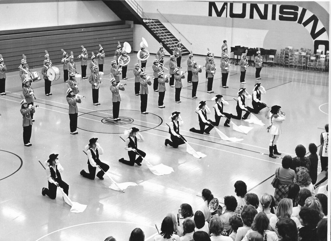I believe this is the Mather Band practicing in the gymnasium in the early 1980s. Munising proudly won the Class C state football championship at the Silver Dome in Pontiac in 1980. My husband and I traveled downstate with the band as the fan buses were filled and what a noisy ride. (Photo courtesy of Mary Jayne Hallifax)