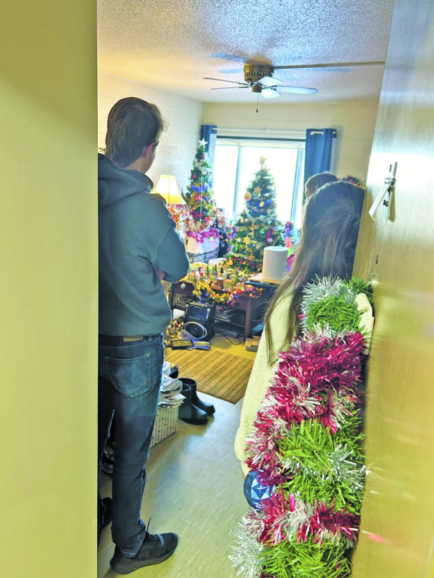 Students in the CTE nurse’s aide class deliver Christmas cheer to residents of Lakeview Manor on Thursday. This apartment had a headstart to feeling festive. (Houghton Daily Mining Gazette photo)