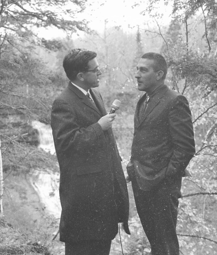 It’s not everyday you see state and federal officials holding a press conference in the woods. I captured a great photograph of U.S. Rep. Raymond F. Clevenger and Stewart L. Udall, Secretary of the Interior from Washington, D.C., discussing the issures at the trailhead leading to Chapel Falls. I probably did these on assignment for The Mining Journal. (Photo courtesy of Mary Jayne Hallifax)