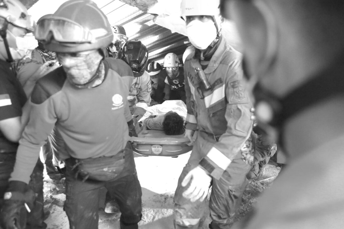 Rescuers in hardhats crawled through tight passages made of concrete blocks, steel bars and rubble collapsed in the debris, chipping away at it with hammers and hand-held power tools to try and reach those still underneath.
