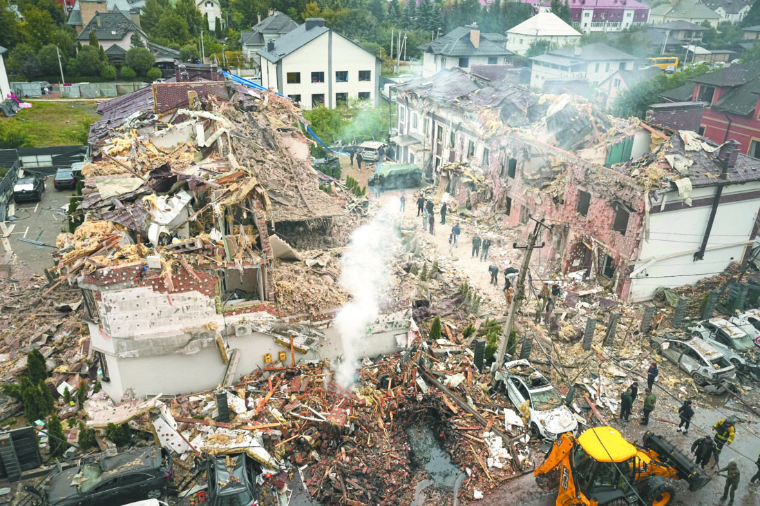 - Rescuers work at the site of an apartment buildings damaged during a Russian attack in Kyiv, Ukraine, Sunday, Sept. 28. (AP photo)