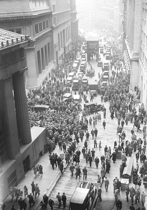 A crowd is seen gathering on Wall Street after the 1929 stock market crash. (Courtesy photo)