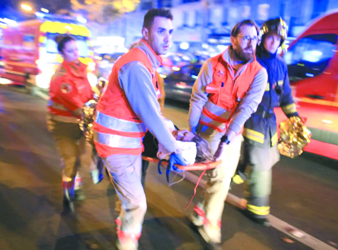 Emergency workers respond during the Paris terrorist attacks. (AP photo)