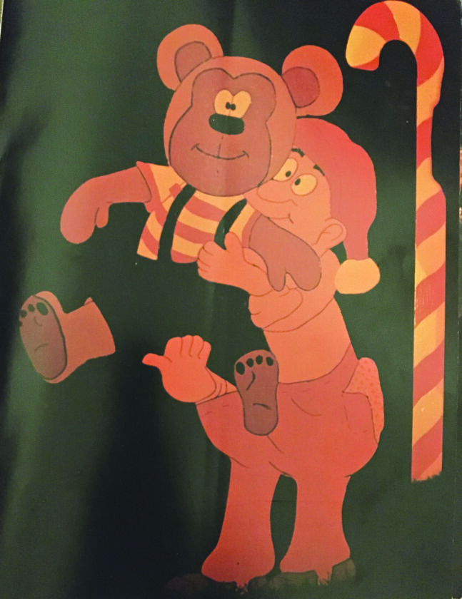 Every payday he bought plywood and paint. He cut the figures and drew the detail on the figures free-hand. This got to be a family affair, his wife Darlene doing the tedious work, and his sons Kevin and Dean painting stockings and candy canes.
