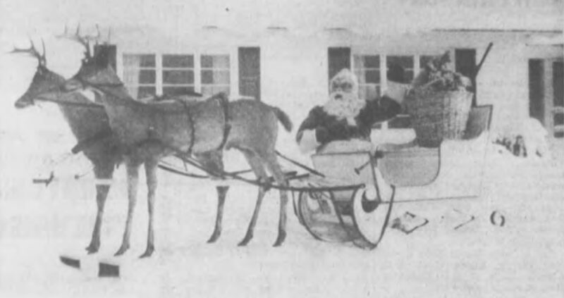 Where there is Santa, there must be reindeer. For many years, Ishpeming was fortunate enough to have a pair of real — albeit carefully taxidermied — reindeer pulling Santa’s sled. Originally, they were in the holiday window at the Atkins store, but by 1962 they were pulling Santa’s sleigh in the front yard of a home on Deer Lake Road.