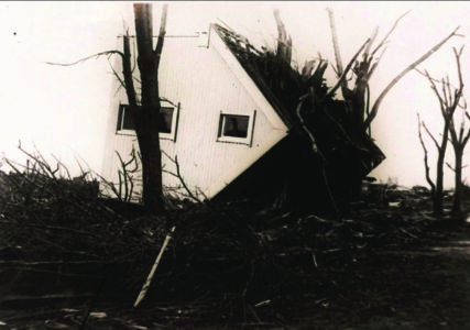 A March 21, 1925 photo of an overturned house that was carried more than 50 feet from its foundation by a tornado at Griffin, Indiana. (AP file photo)