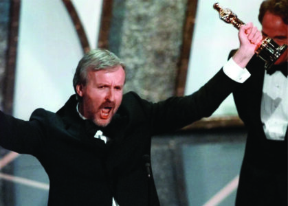 James Cameron reacts, saying “I’m the king of the world!” after accepting the Best Director Oscar for “Titanic” at the 70th Academy Awards in Los Angeles Monday, March 23, 1998. (AP file photo)