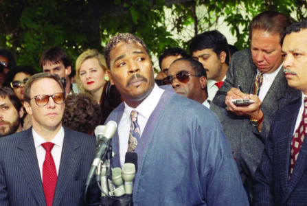 On March 3, 1991, motorist Rodney King was severely beaten by Los Angeles police officers after a high-speed chase in a scene captured on amateur video that sparked public outrage. (The subsequent acquittal of four officers of felony assault and other charges in April 1992 triggered days of rioting and dozens of deaths in Los Angeles.)